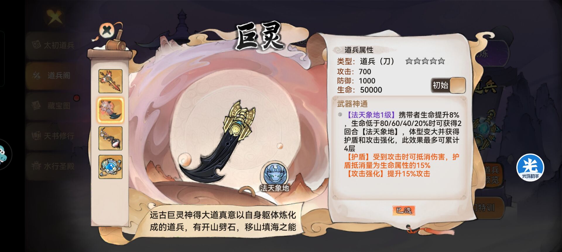 ②然后就是重点讲下【道兵阁】的4把道兵的选择。