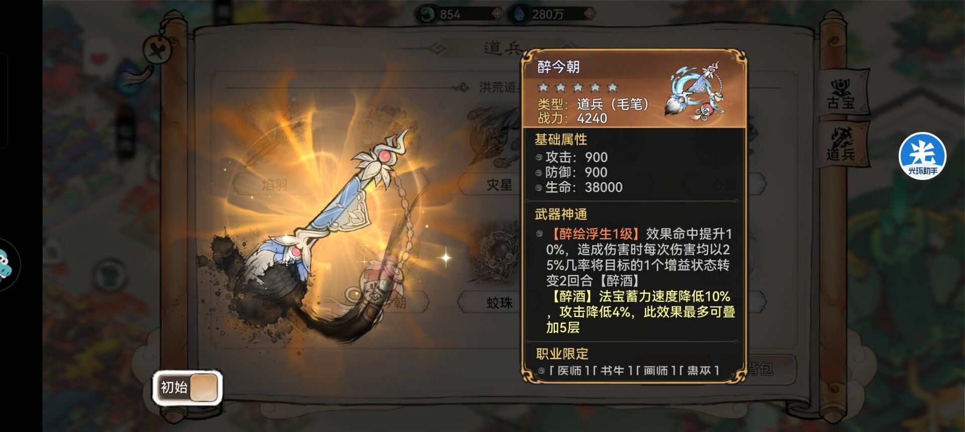 7:【醉今朝】—搭配推荐。这把道兵效果是提供大量的命中率。