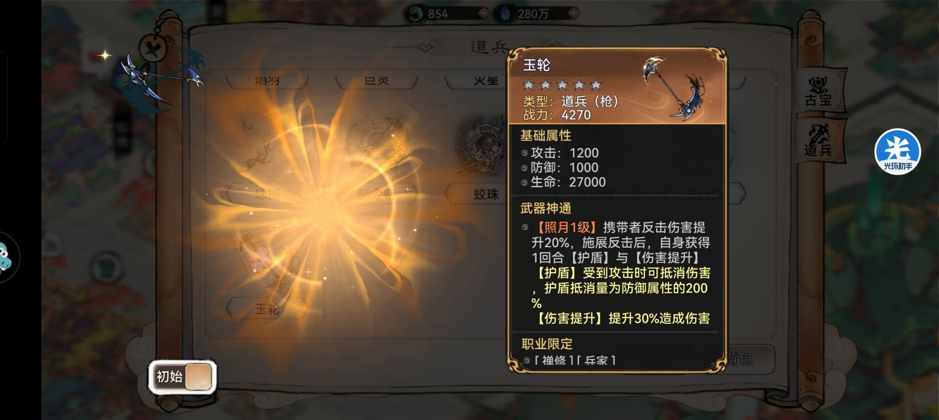 如果没有【玉轮】天火兵也可以考虑选择这把道兵,毕竟这把道兵可以提高攻击和护盾。