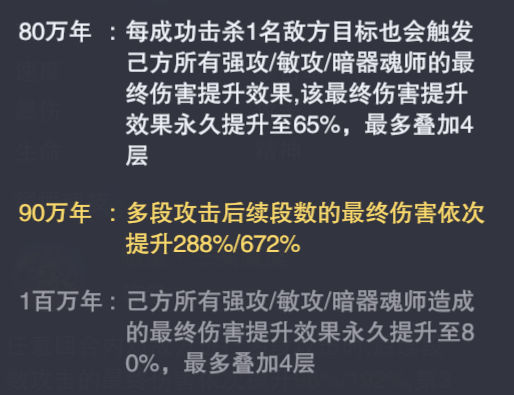 不过这次策划在这个新的合成凶兽魂环上到了做了点心机,因为把最重要的效果给放到了90万年......这就使得整个我们合成魂环的成本提升了不少,而且这次的90万年+100万年效果都是兼具PVP和PVE的,和过去部分合成凶兽的只顾PVP对比,显然这个操作可能会成为未来新的合成凶兽的一个趋势,维一只感觉亚历山大。
