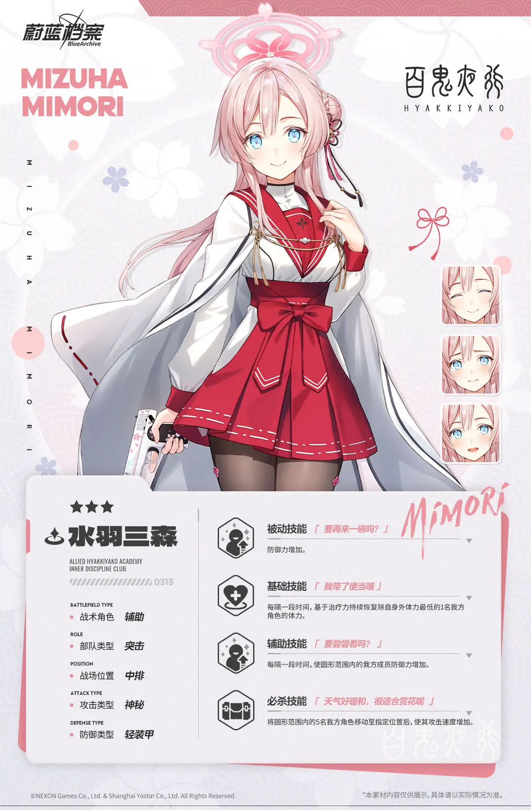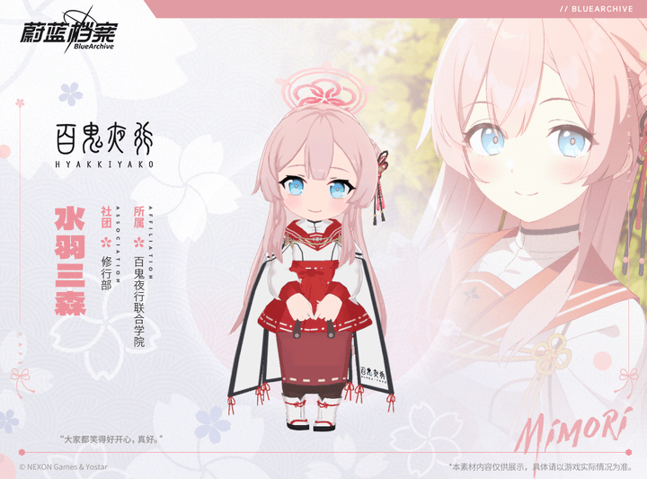 【人物档案】水羽三森光环资讯 - 二次元发布于 2024-02-20关注 //////////档案启封//////////■ 水羽三森百鬼夜行修行部温柔的副部长。脸上一直挂着温和的笑容,对每个人都同样亲切,因此受到众人的欢迎。和修行部部长椿是童年玩伴,受到小时候读过的少女漫画影响,怀揣着成为窈窕淑女的梦想加入了修行部。为了实现这个梦想,她每天都在努力做烹饪与打扫的修行。“早上洗脸了吗?有按时吃饭吧?呵呵,嗯,您做得很好。要不要来一杯好喝的红茶呢?”
