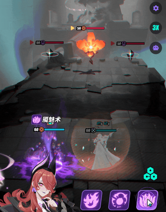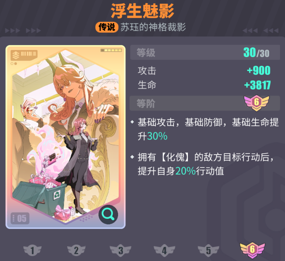 攻击全体敌方3次,每次伤害为自身攻击力15/20/25%,每点速度提供攻击力0.08%额外伤害,有60/80%概率附加2回合[防御下降],之后对拥有[化傀]的目标额外造成自身攻击力30%的伤害。被动效果:自身受到敌方[化傀]目标的技能伤害时,对攻击者反弹所受伤害量50%及苏珏自身攻击力75%的真实伤害。自身不会受到敌方[化傀]目标任何技能效果影响。敌方使其友方[化傀]提前结束时,为其附加2回合[化傀]。