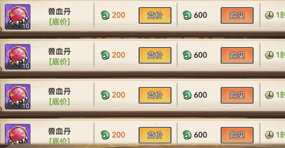 因为拍卖行10个兽血丹起拍价是200灵玉。
