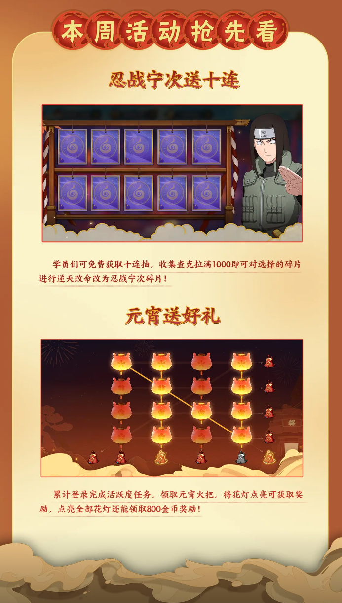 元宵将至,福利来袭!忍战宁次送十连,本周活动爆料一口气全看完!