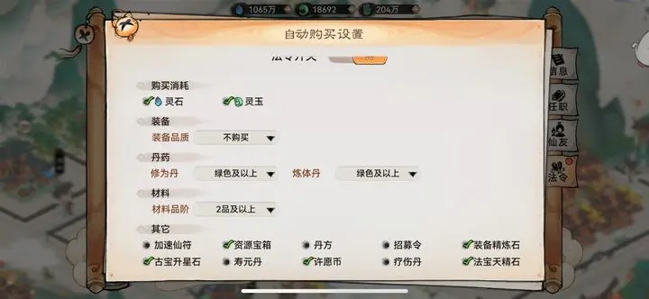缺药买满修为药,但我建议买满古宝灵尘;