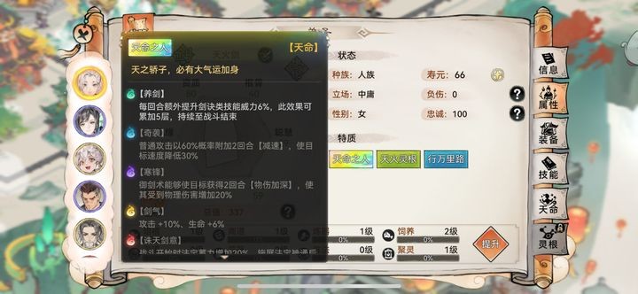 【道友指正:养剑和剑意天命没啥用,因为要有剑诀功法才能触发,但是强的技能都不是剑诀。带了也触发不了】参考9楼