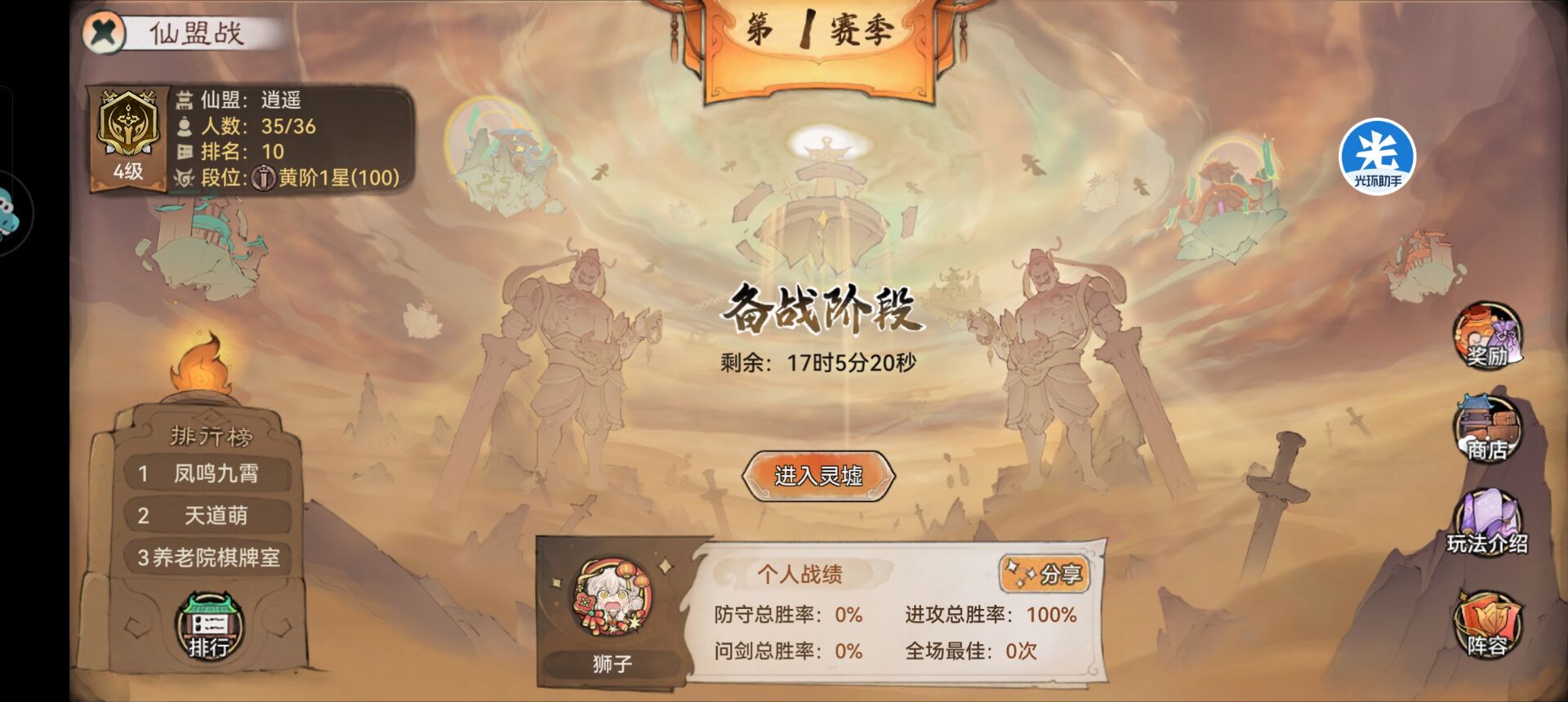 狮子最近有收到祖师们问:仙盟战怎么玩?