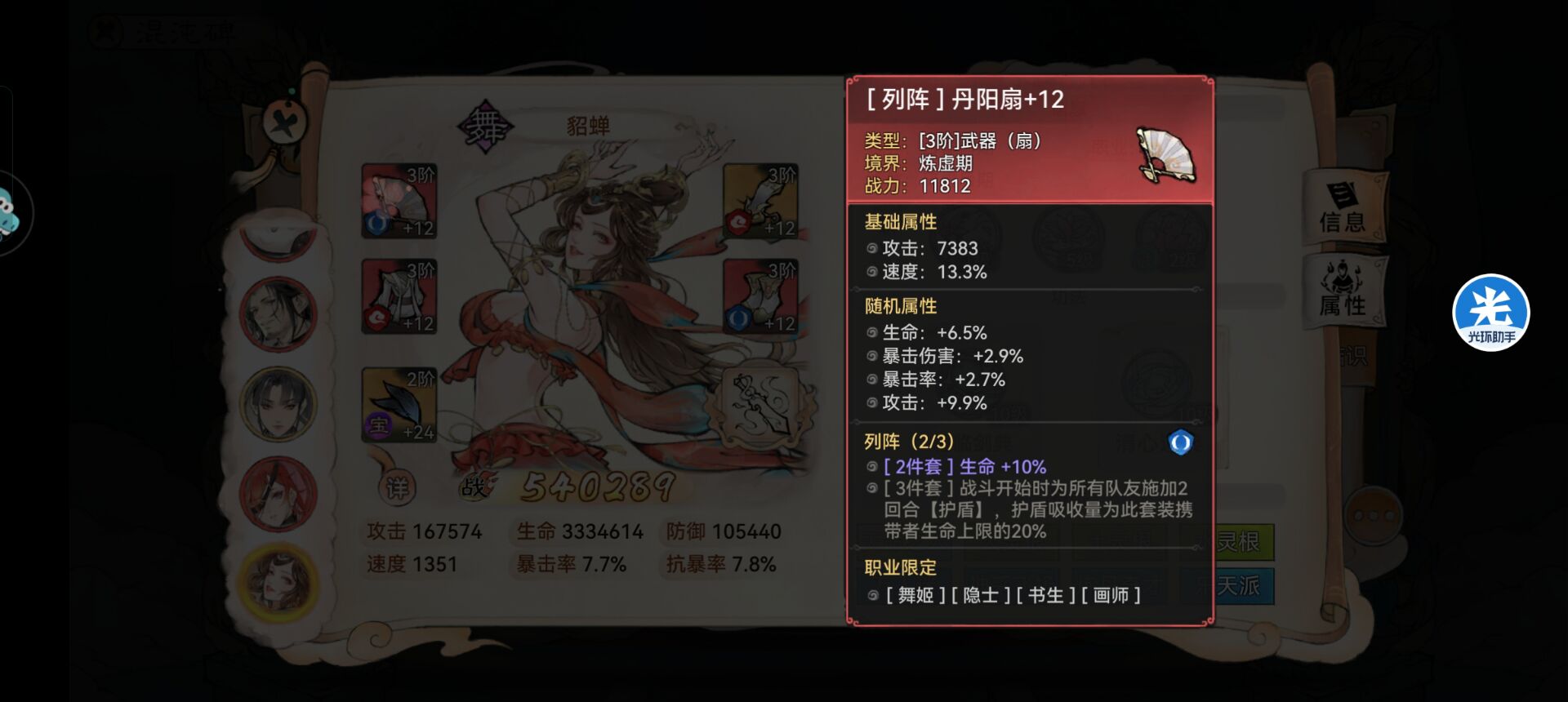 3件套因为是增加效果和抵抗,其实最适合的就是画师、书生以及搭配控制类功法的舞姬,因为这都是需要吃效果命中的。