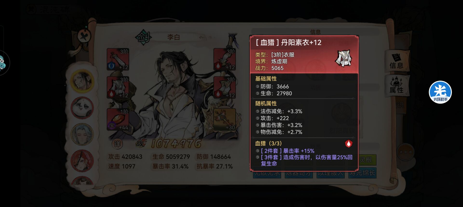 ③【血猎套装】搭配推荐。血猎套装和修罗套装一样,都拥有高额的暴击率加成。