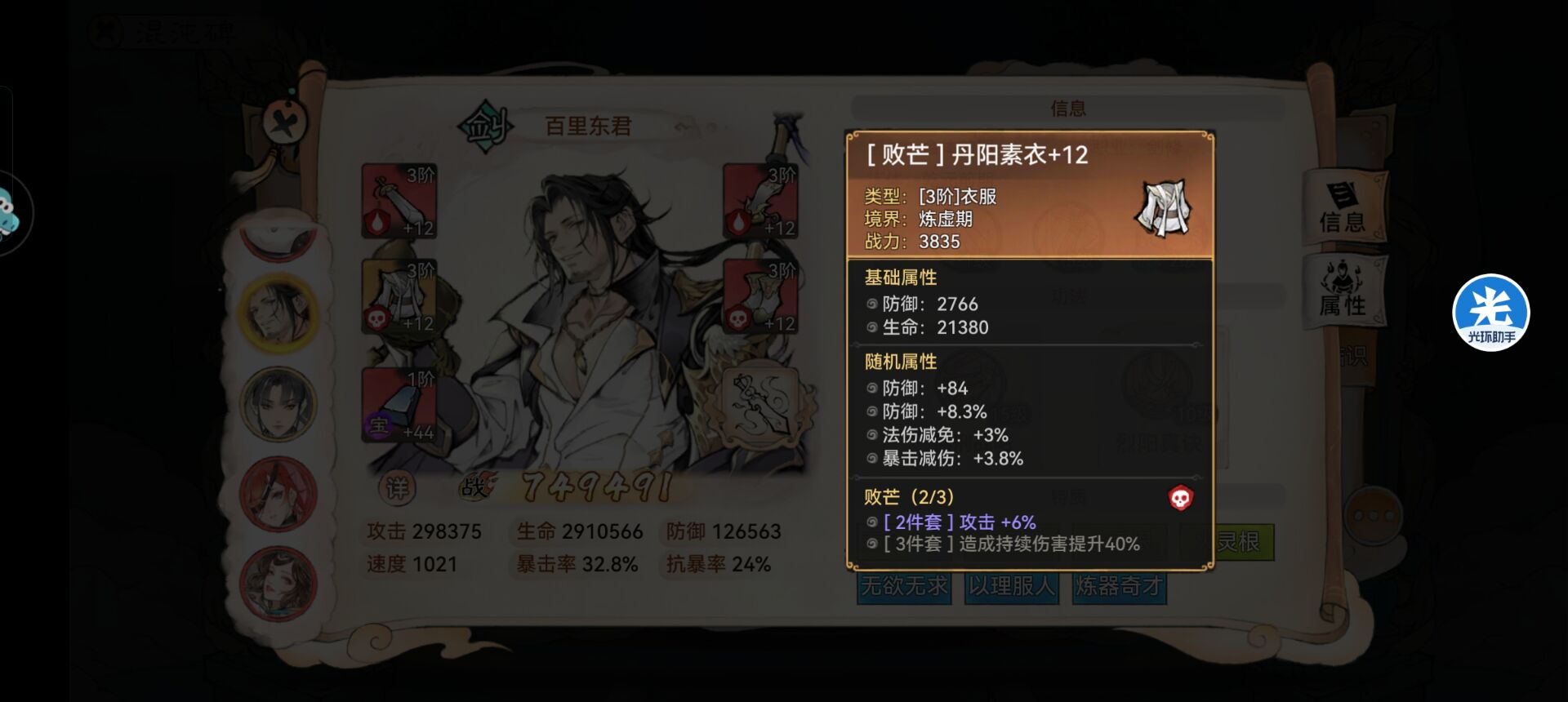 2件套的15%暴击率效果,也可以搭配剑修和书生,来提高暴击率。