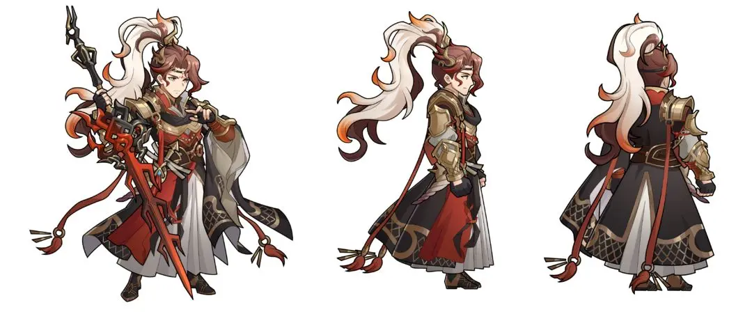 朱然的动作突出两个方面:“简单,有效”。因为他的性格不太喜欢过多展示自己的内心,所以设计上都尽可能高效地去突出他的特点。普通状态下的怒攻首先利用那把对他很重要的海螺断刃划破虚空,再通过这个裂缝干脆利落地施展打击。但另一个状态下的他,还是会仍不住流露出自己的喜好——龙,所以动作会稍微华丽,突显他的龙形剑与他内心的呼应。