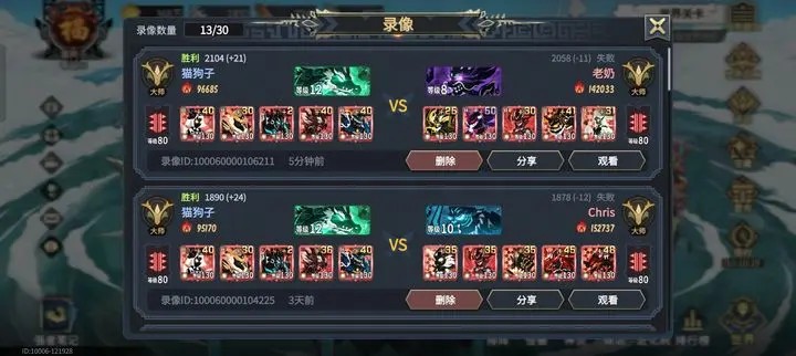 盾主为主的阵容首先考虑的是前排的霸气,既然是强压队一定不能被推墙角,我现在青龙12级天马6级就是防止这一点的,其次考虑生存,前排扛得越久后排输出越强,毕竟领先一个后排伤害,下图越战的都是因为对面阵容霸气不够被我压墙角,放两波技能后排蒸发输掉的,算是反面例子。