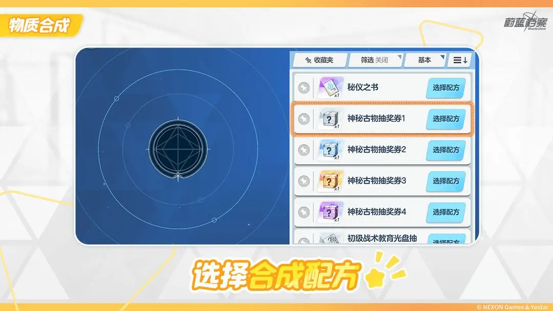 • 每合成1个“神秘古物选择券1”需要“1级古物材料×2”