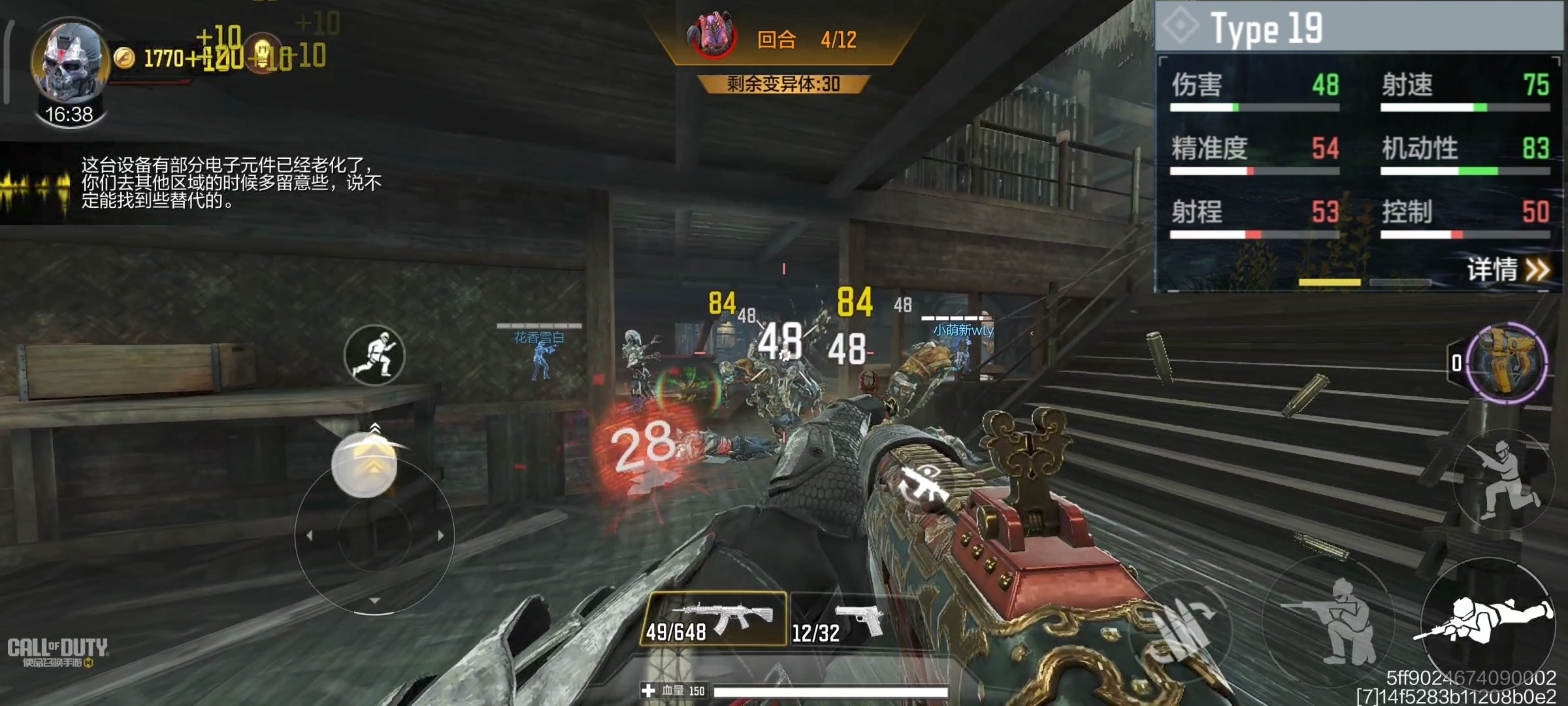 枪械Type 19在异变狂潮中,虽然伤害只有48点,弱点伤害84点,但佩戴支援火力弹鼓后,荷枪实弹技能后,主弹夹75,后备弹夹648发,续航充足,因此异变狂潮最高可以困难使用!