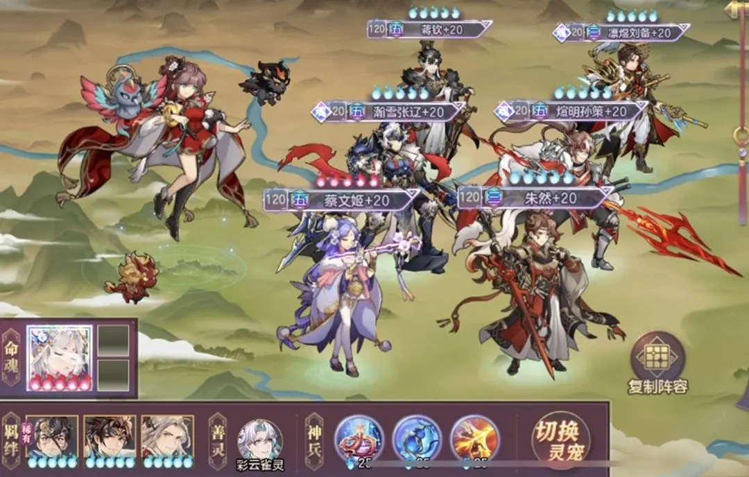 加入了其他阵营强力魂将的变种吴国新火烧,对于没有魂将关羽的小将军,在新区半新区中可以作为不错的过渡阵容使用,保留了煊明孙策-蒋钦-朱然的吴国火烧体系,红豆蔡文姬辅助生存,凛煜刘备提供珍贵的控制,单体能力强大的瀚雪张辽进行残局收割。但是在养成度高的区服,朱然还需要等待一个更适配的体系。
