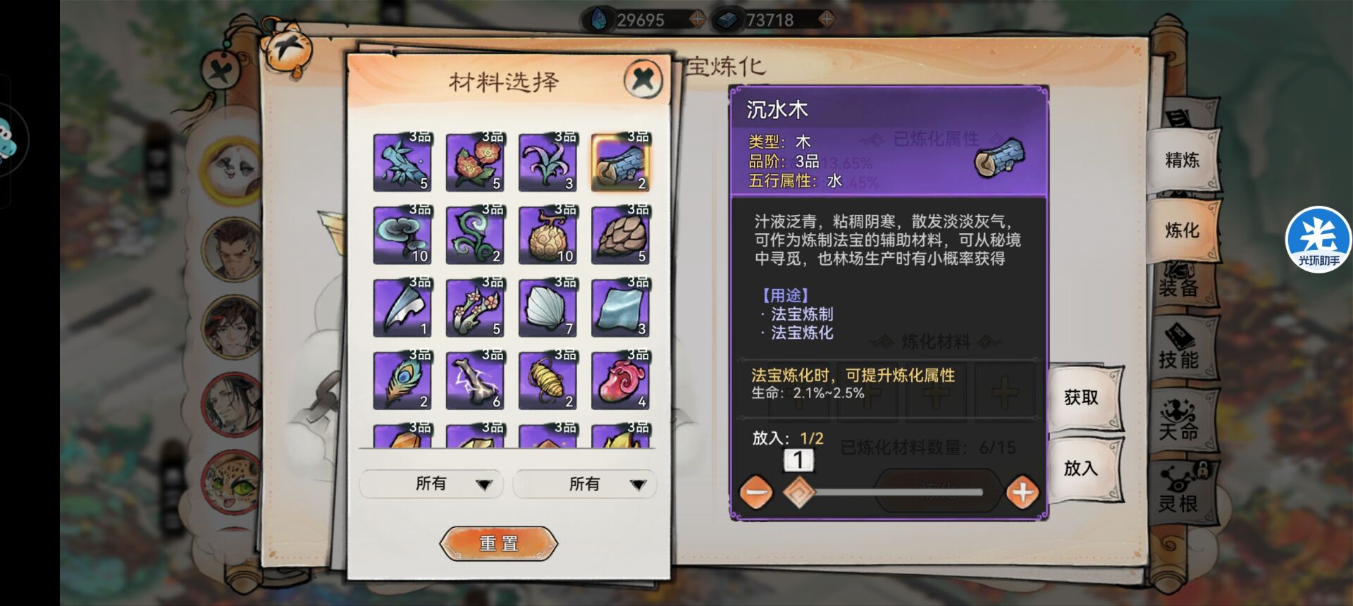 那么这种情况下辅助和前排也可以优先选择2品和1品材料去炼化法宝。