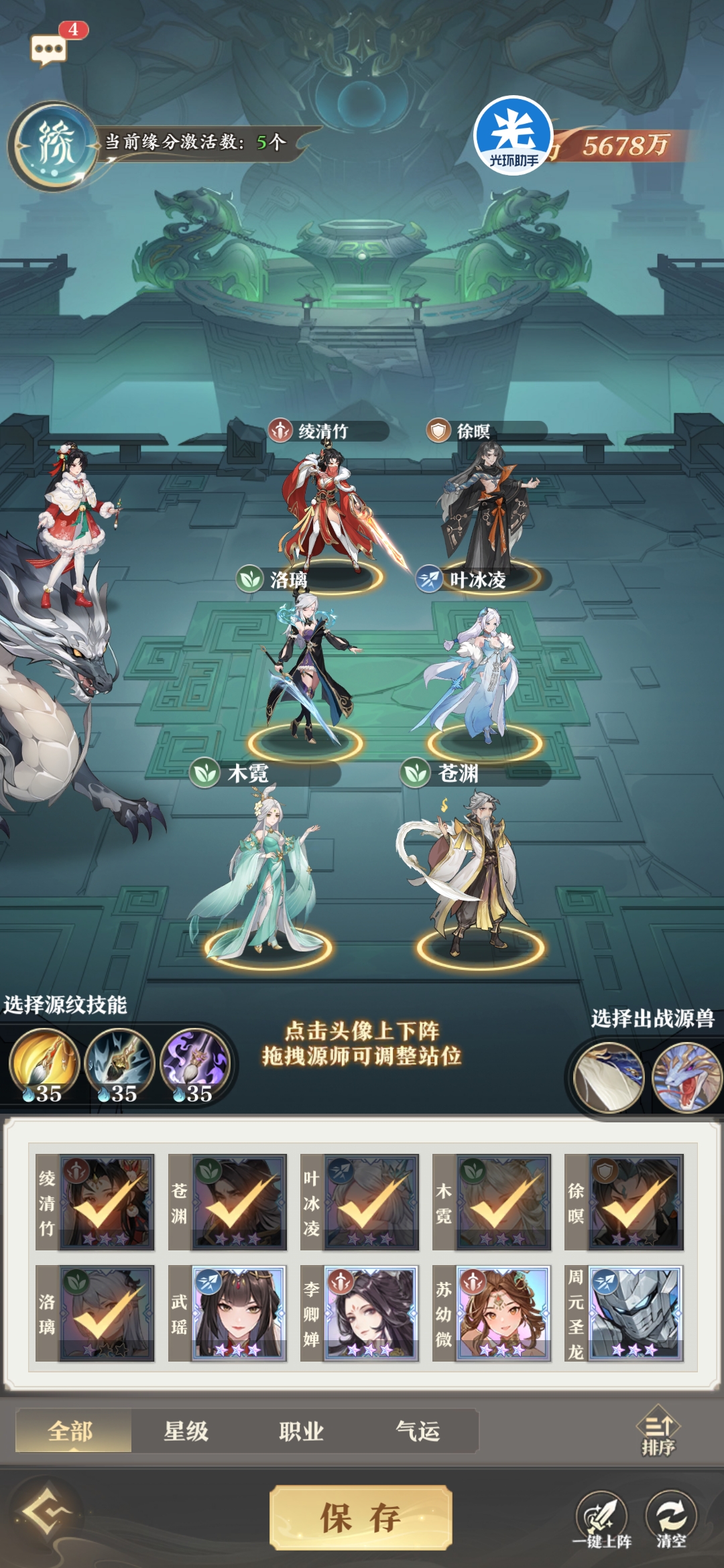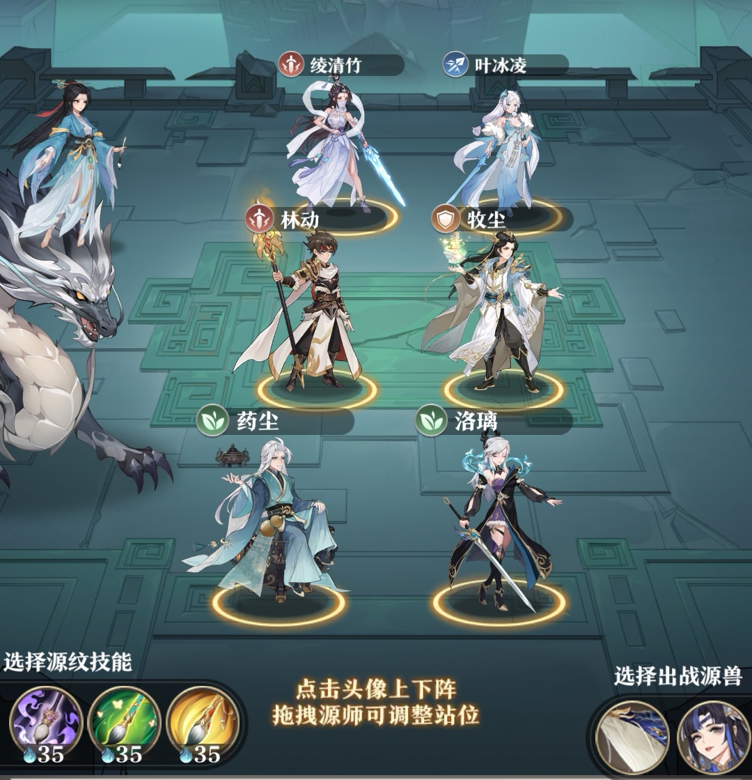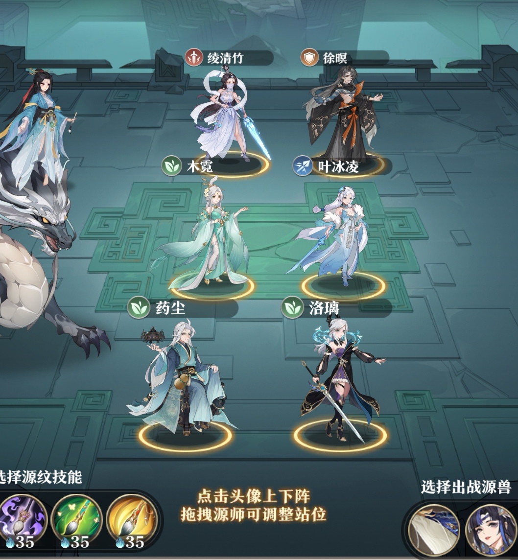 源兽最优选择祖饕(3星以上)+九幽雀,但是3星以上的祖饕不是人人都有的,没有的话就选择岄鲲+九幽雀即可。因为我是破队转的阵容,所以之前没有提前练九幽雀,大家不要学。