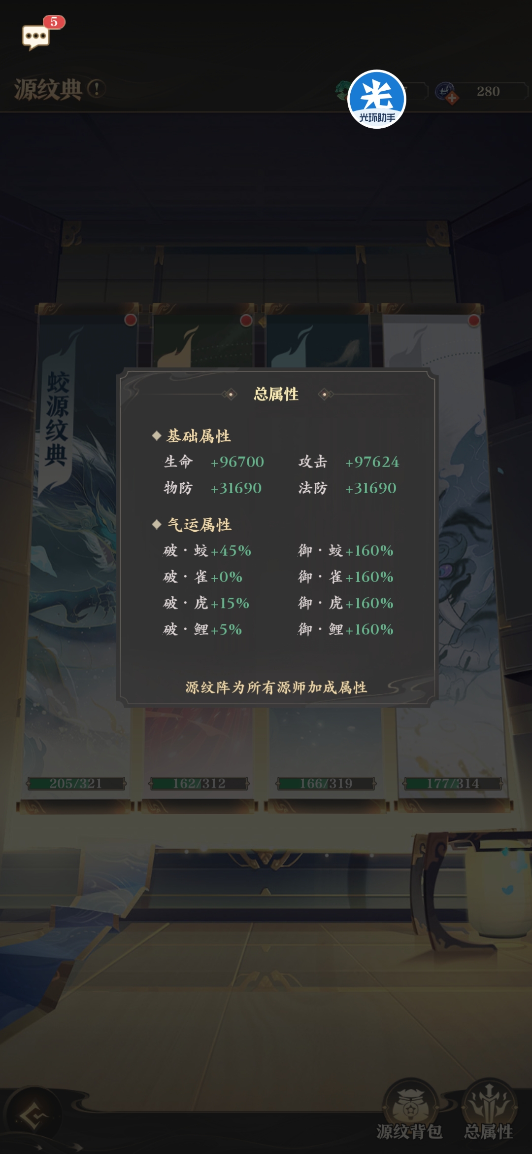 源石一律选择:源师全属性+源师三围+源兽任意属性这五种源石即可。