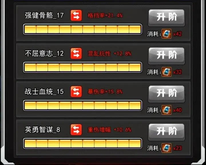 解析:开场命中率增加50%命中率增加的不算太多,每次受击是格挡率增加50%,只有格挡率可以为后续的回复生命值,作为一个铺垫手机就可以加格挡率格挡率也不算太低,基本都是可以直接触发回血被动的只要不是破荡太高就可以