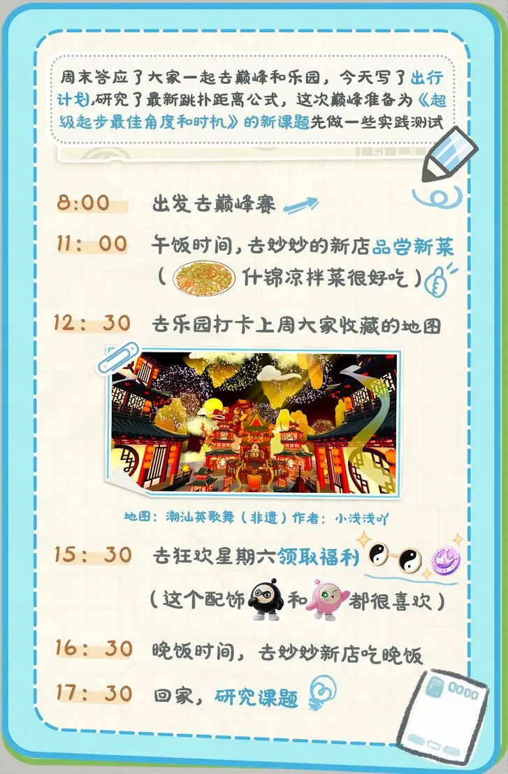 给P人一点震撼蛋仔派对 - 新闻星发布于 2024-03-02关注生活枯燥乏味,出游解救人类打工蛋上学蛋刚刚开学复工不久五小只竟然潇潇洒洒出去玩了!还晒出好几篇精致可爱的手帐欢乐属于你们,打工属于皮蛋/(ㄒoㄒ)/~~好在眼看周末时间就到了皮蛋决定小小“借鉴”一下他们的出游路线先和本蛋一起沉浸式意念出游一下吧~ 好好好想你的风东南西北到处吹是吧真是让皮蛋狠狠羡慕住了俗话说得好周一周五吃苦,周末大补特补看看时间,先不聊了周末出游计划走起!冲啊ε=ε=ε=(~ ̄▽ ̄)~