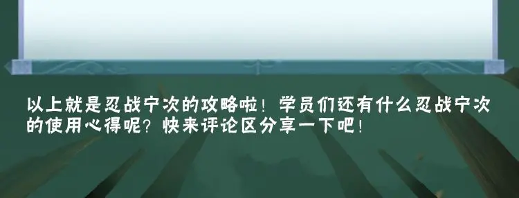 忍战宁次的控制能力很强,二技能目押两次便可以封印对手的替身,点穴能延长对手技能冷却时间和追加负面效果,熟练打出二技能的目押,能快速封印对手的穴位,随着点穴的数量越来越多,忍者宁次的优势会越来越大。