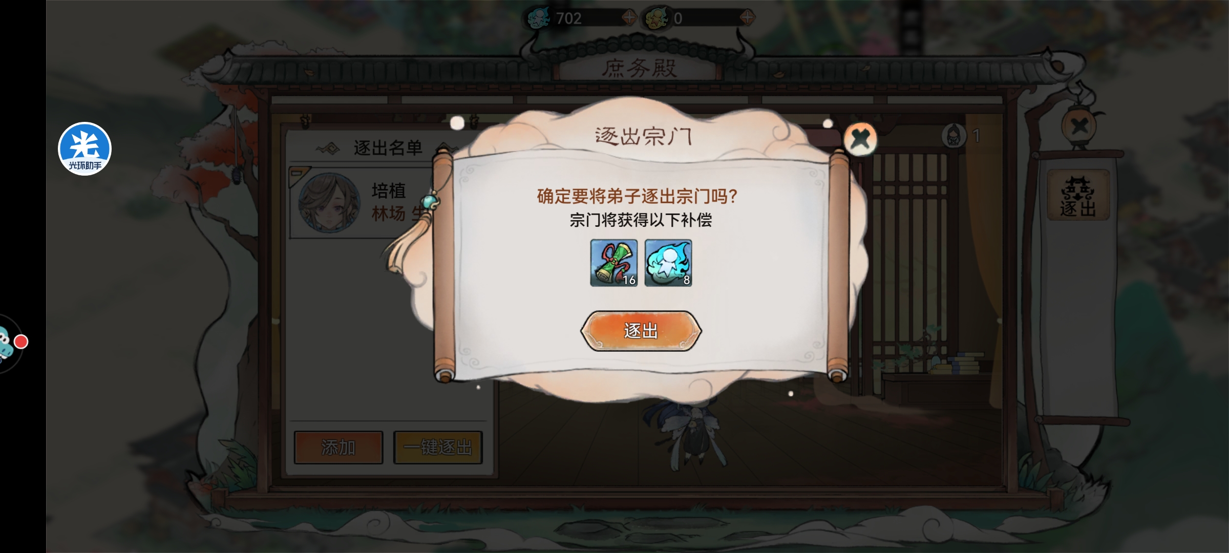 可以直接喂给我们的主力。(不要想着把能力等级不够的角色培养起来再逐出,哪怕自带的是9级也得7300经验才能到10级,然后逐出才给3200,我们直接让想升级的弟子吃这7300经验多好。)