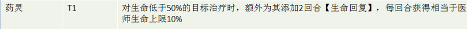 药灵能够对生命低于50%的玩家提高额外的治疗效果,提高医师的治疗能力。