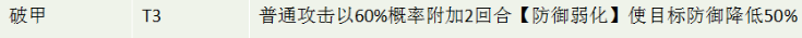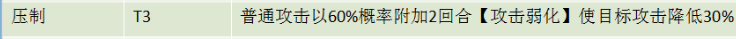 这个天命技能缺点是只能持续1回合,并且降低的效果只有8%,所以只能给到T1。