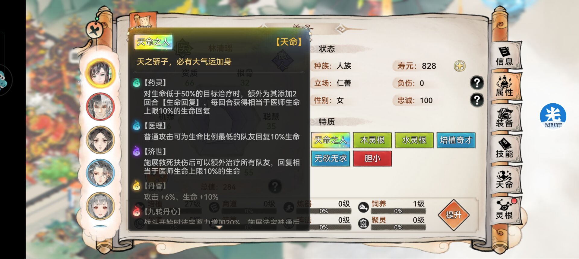 狮子认为:仁心+药灵+妙手。这三种天命技能是医师最好的选择。