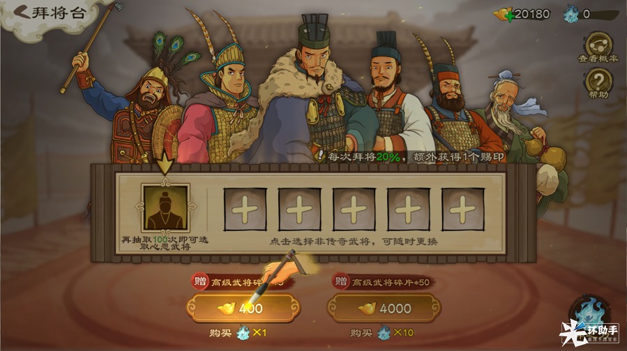 风云际会,英豪云集。拜将台不仅可以获得传奇武将碎片,还可以通过使用印之力觉醒武将,待主公集齐足够的印之力,可再来拜将台觉醒心仪武将。