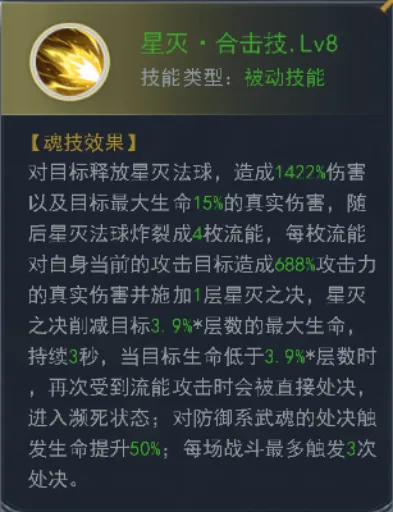 从合击技的角度来说,中低战玩家的冷却缩减不够,刷新技能的装备少,使用星灭可以更快速的触发合击。