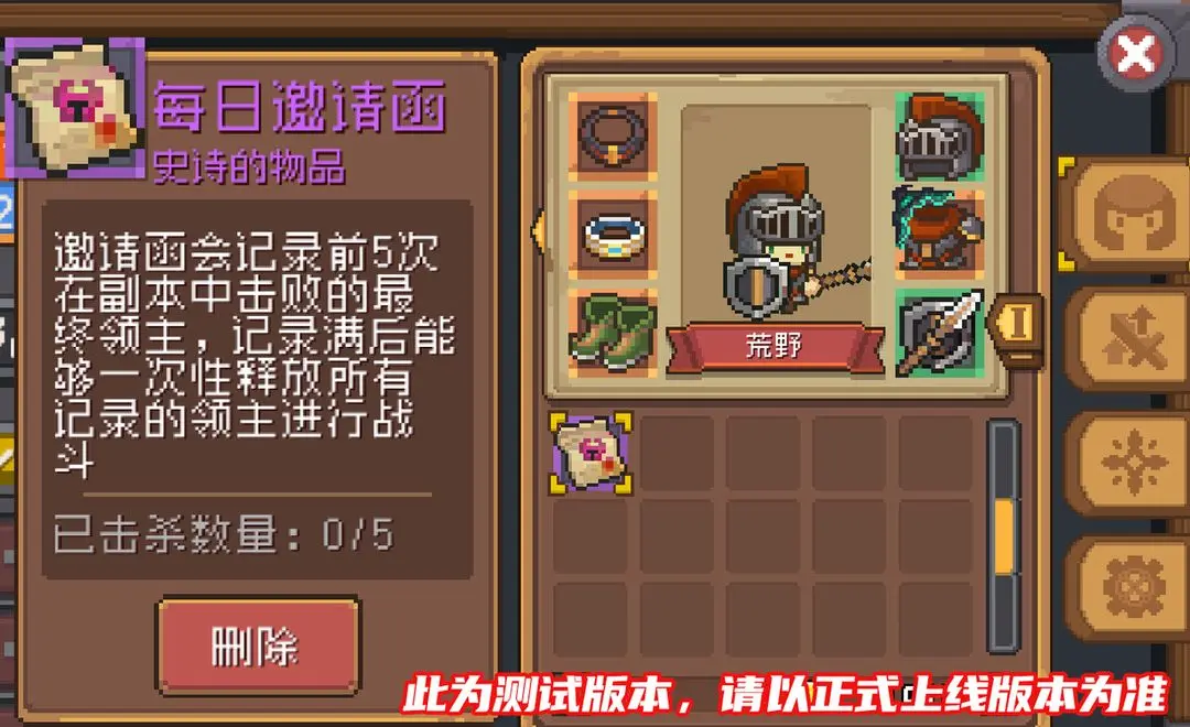 注意:若小骑士当日进入特殊关卡未达到三次,但误删除了【每日邀请函】(无论是否记录满5个Boss),小骑士可以重新进入关卡击败Boss,Boss会正常掉落【每日邀请函】,不消耗进入特殊关卡的次数,但小骑士需重新记录Boss。