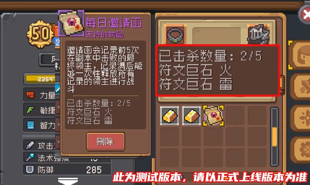 例:击败【精英·符文巨石 火】和【符文巨石 火】后,在【每日邀请函】中均记为“符文巨石 火”。