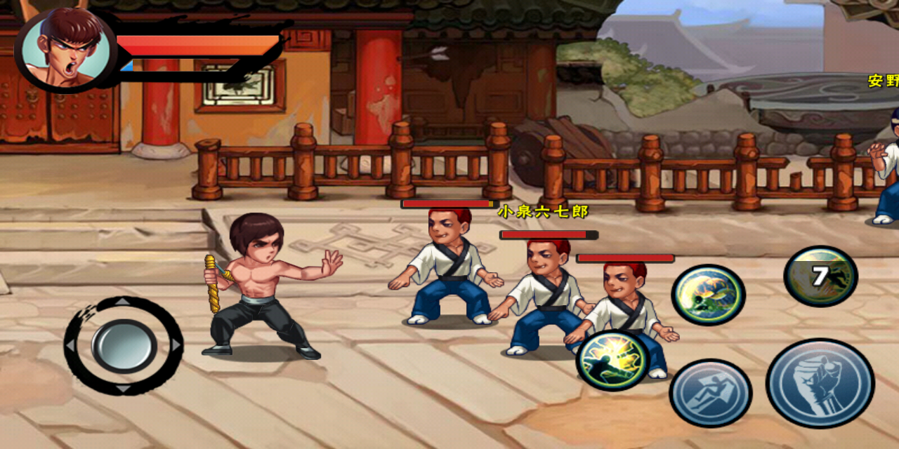 《功夫激战》以抗日战争时期的中国为背景,主角Lee为了营救被抓走的青梅竹马,向日本敌人的大本营前进。从故事的设置来看,是玩家熟悉的英雄救美情节,也是闯关游戏的经典桥段,扮演功夫英雄总能够让大家充满代入感。
