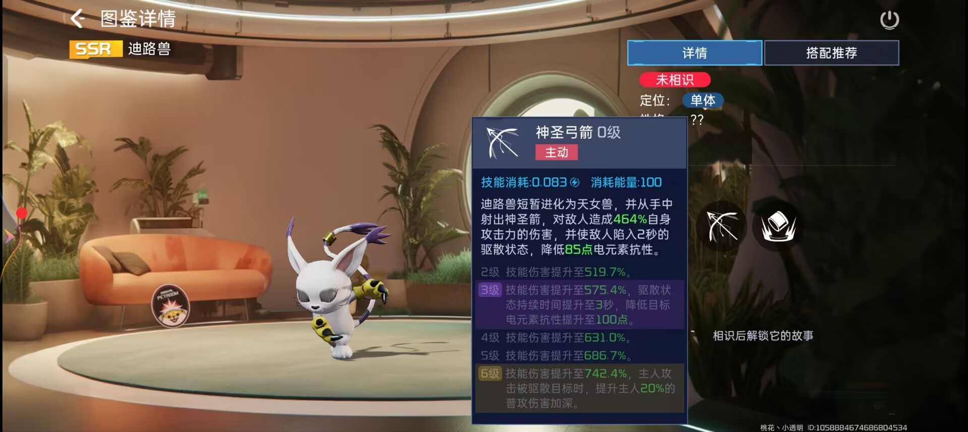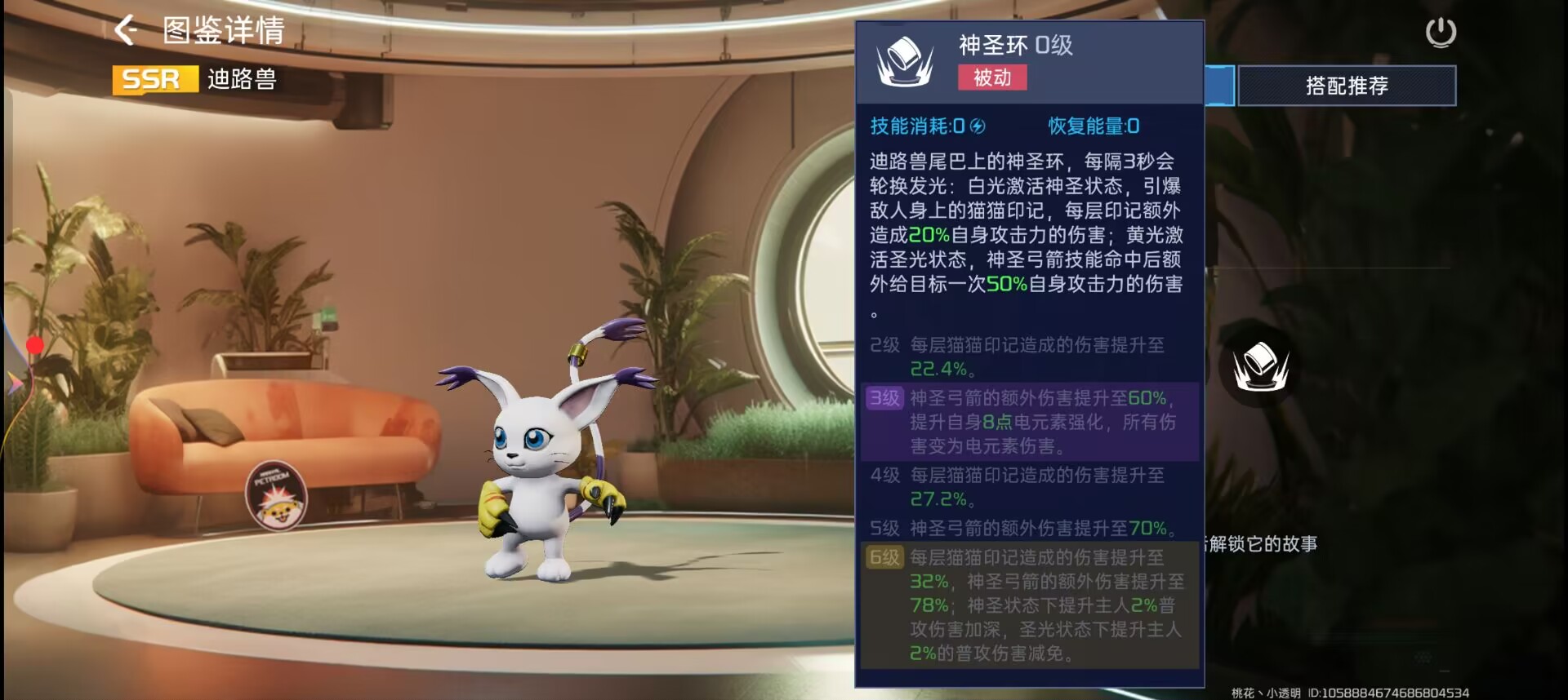 被动技能为:【神圣环】。被动能让迪路兽转换状态。