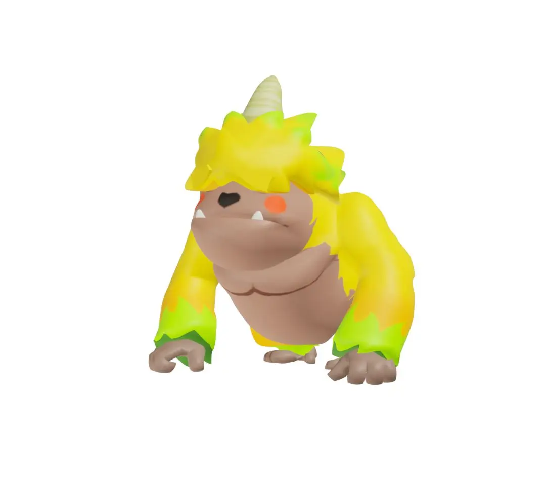 首先是来自于丛林的独角猩,宽厚的手掌支撑起了他的身体!独角猩披着一层亮眼的黄色皮毛,这也让它备受瞩目~