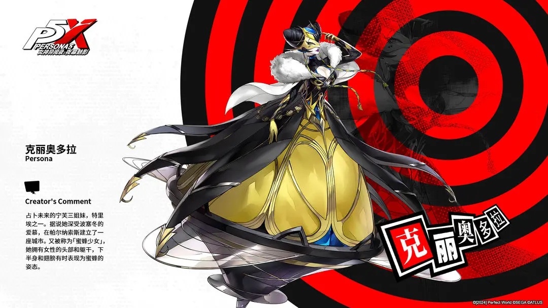 INDEX全书 |人格面具 Ⅱ『克丽奥多拉』介绍女神异闻录:夜幕魅影 - 新闻星发布于 2024-03-07关注>>>PERSONA!『克丽奥多拉』介绍占卜未来的宁芙三姐妹,特里埃之一。据说她深受波塞冬的爱慕,在帕尔纳索斯建立了一座城市。又被称为「蜜蜂少女」,她拥有女性的头部和躯干,下半身和翅膀有时表现为蜜蜂的姿态。