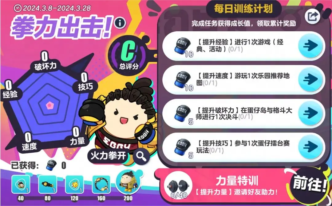 快快登岛参与特训、不断提升成长值