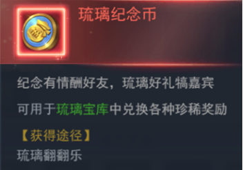 活动期间限时开放琉璃宝库,玩家可消耗在琉璃翻翻乐中所获得的琉璃纪念币,换取珍稀奖励。