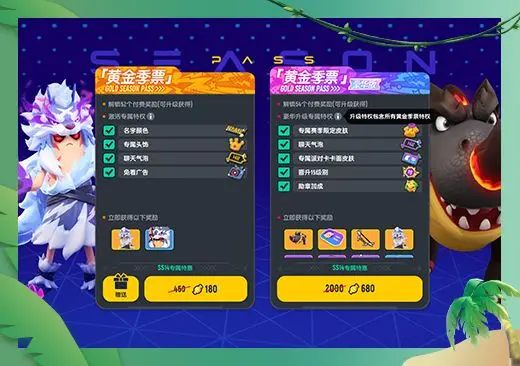 在本次的黄金季票豪华版中,也将包含更多豪华版专属奖励,包括专属赛季限定皮肤、专属派对卡卡面皮肤、专属聊天气泡框、季票任务额外勋章加成,季票等级直升15级等