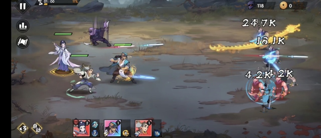 除了上述以外,还有一个“手动”的概念。蓄力流不说,即使是其他核心英雄,在过图的关键节点时,也建议必须手动。因为使用“自动”时,按照规则,释放技能会瞄准离自己最近的怪,而这时候满屏幕的怪,如果自动,核心卡的关键穿透效果往往不能有效打到远处远程小怪,需要手动瞄准,这一点要尤其注意。