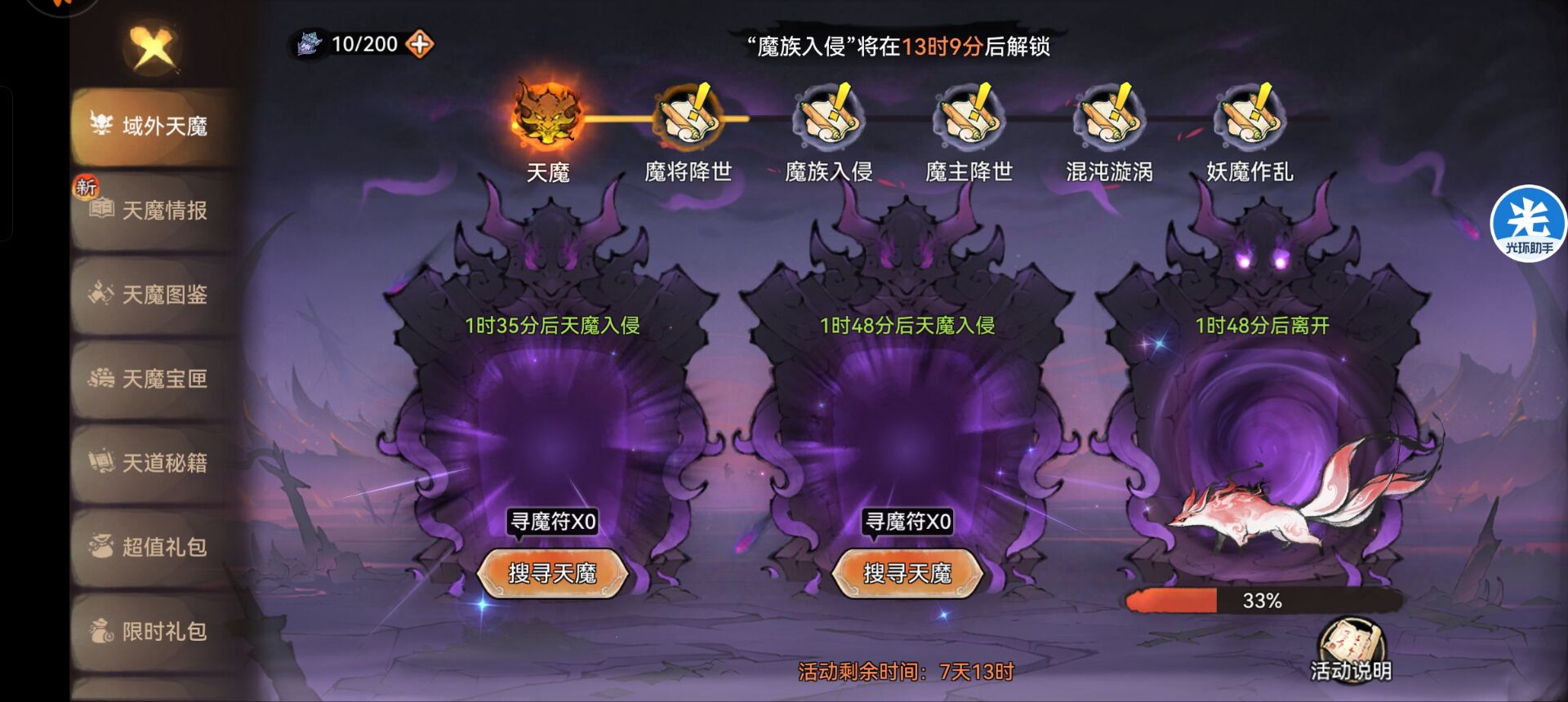 天魔入侵随着时间会解锁每个阶段。一共有六大阶段。