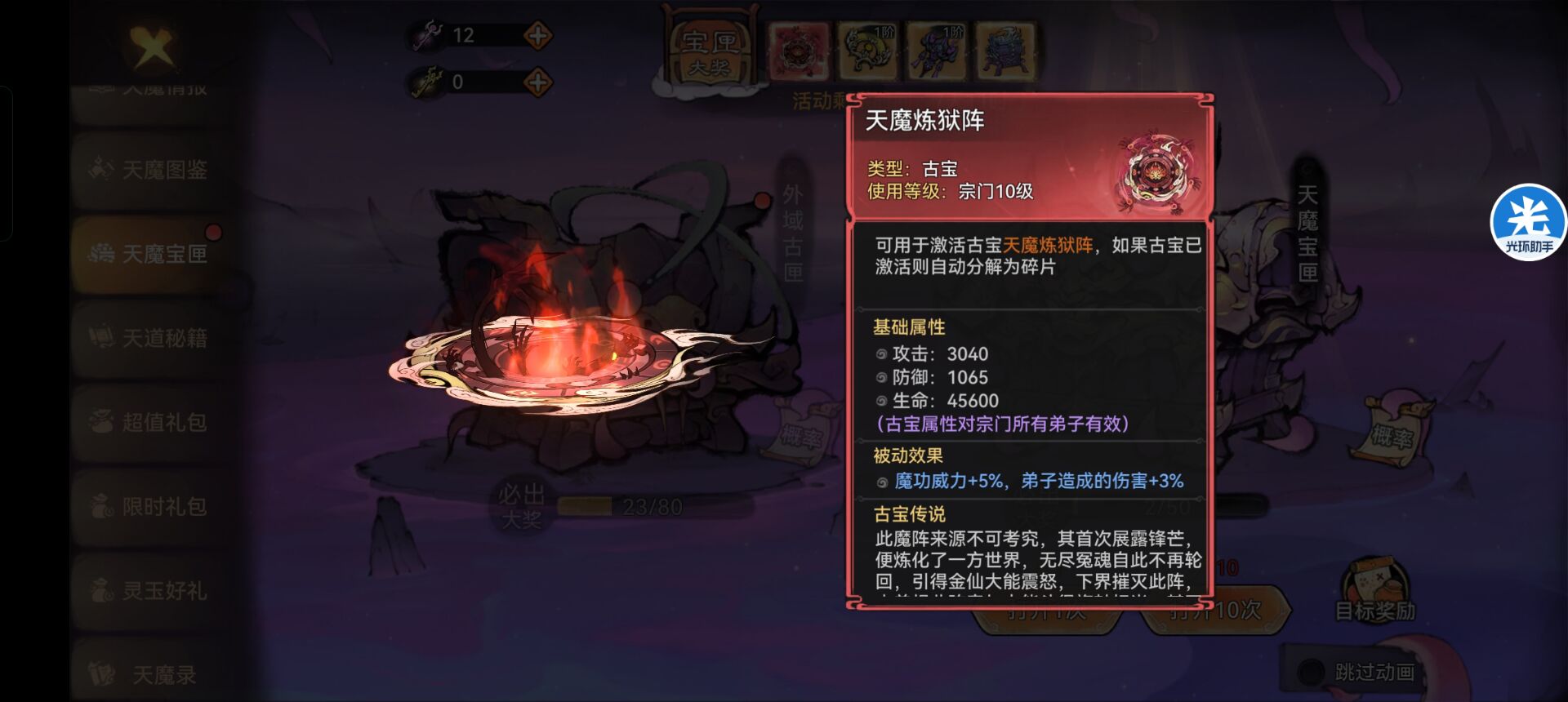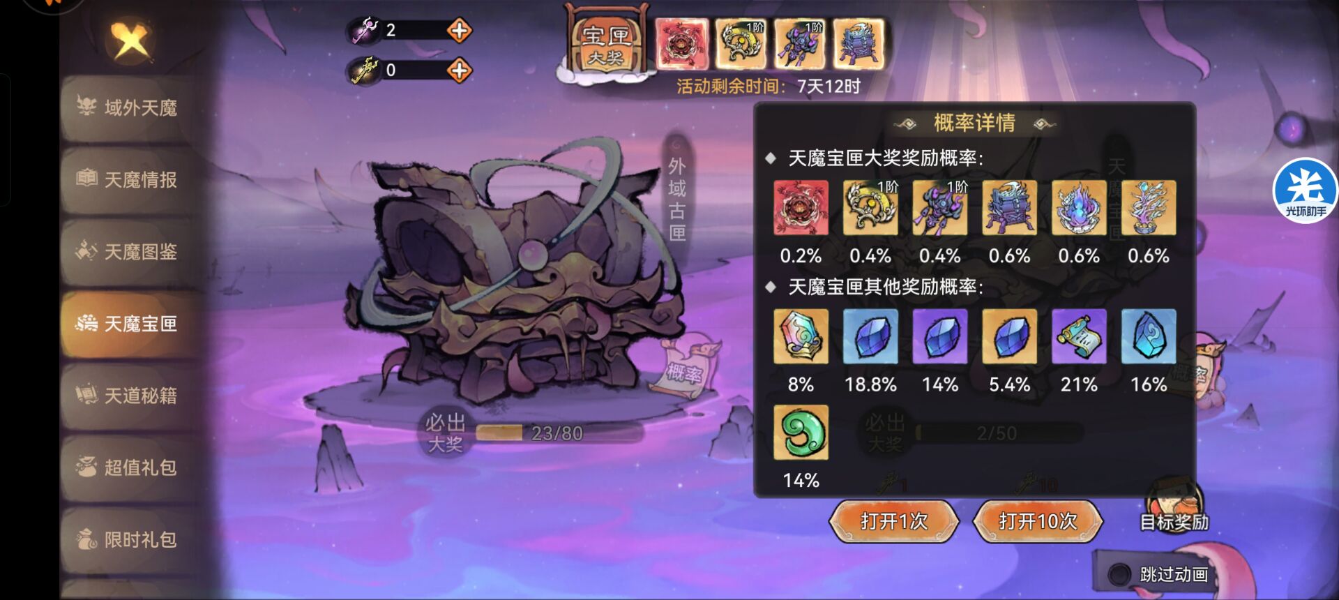 ⭐重点说的就是【天魔宝匣】这个宝箱很多玩家活动一开始就会去购买灵玉礼包里面的【天魔秘钥】来开启这个宝箱。