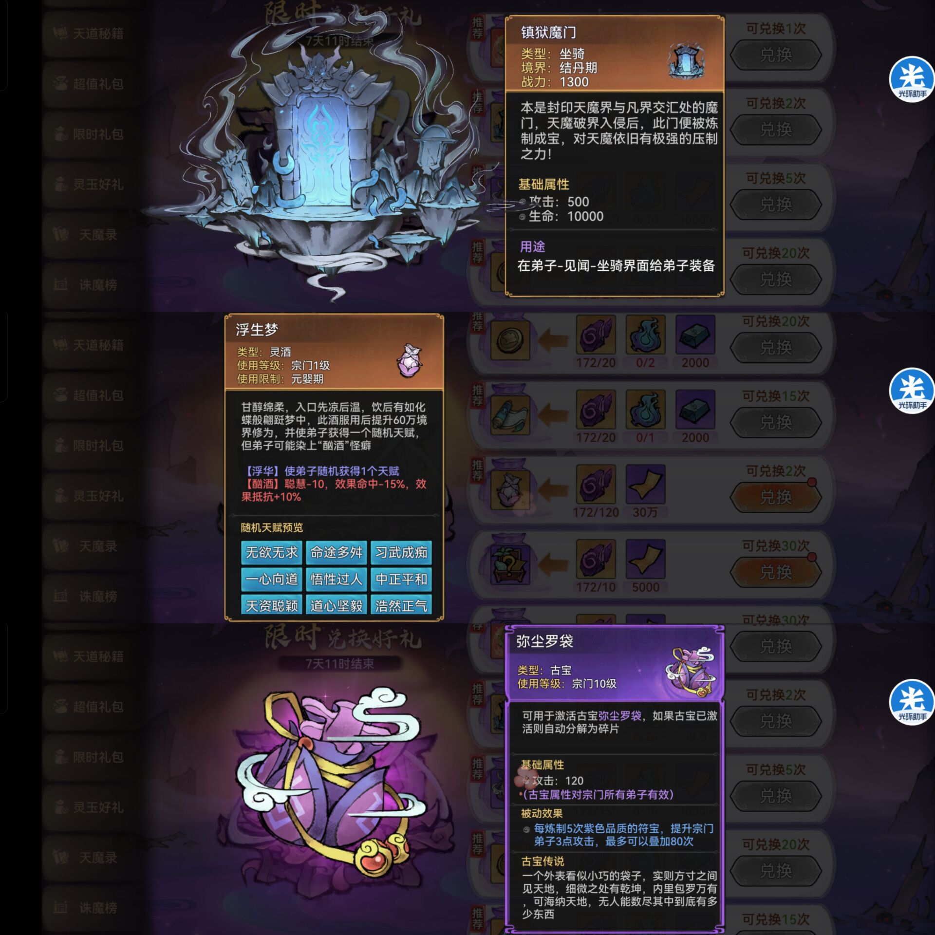 剩下的都是日常我们可以获得资源,只有灵石礼包性价比高,其他都不太推荐兑换。