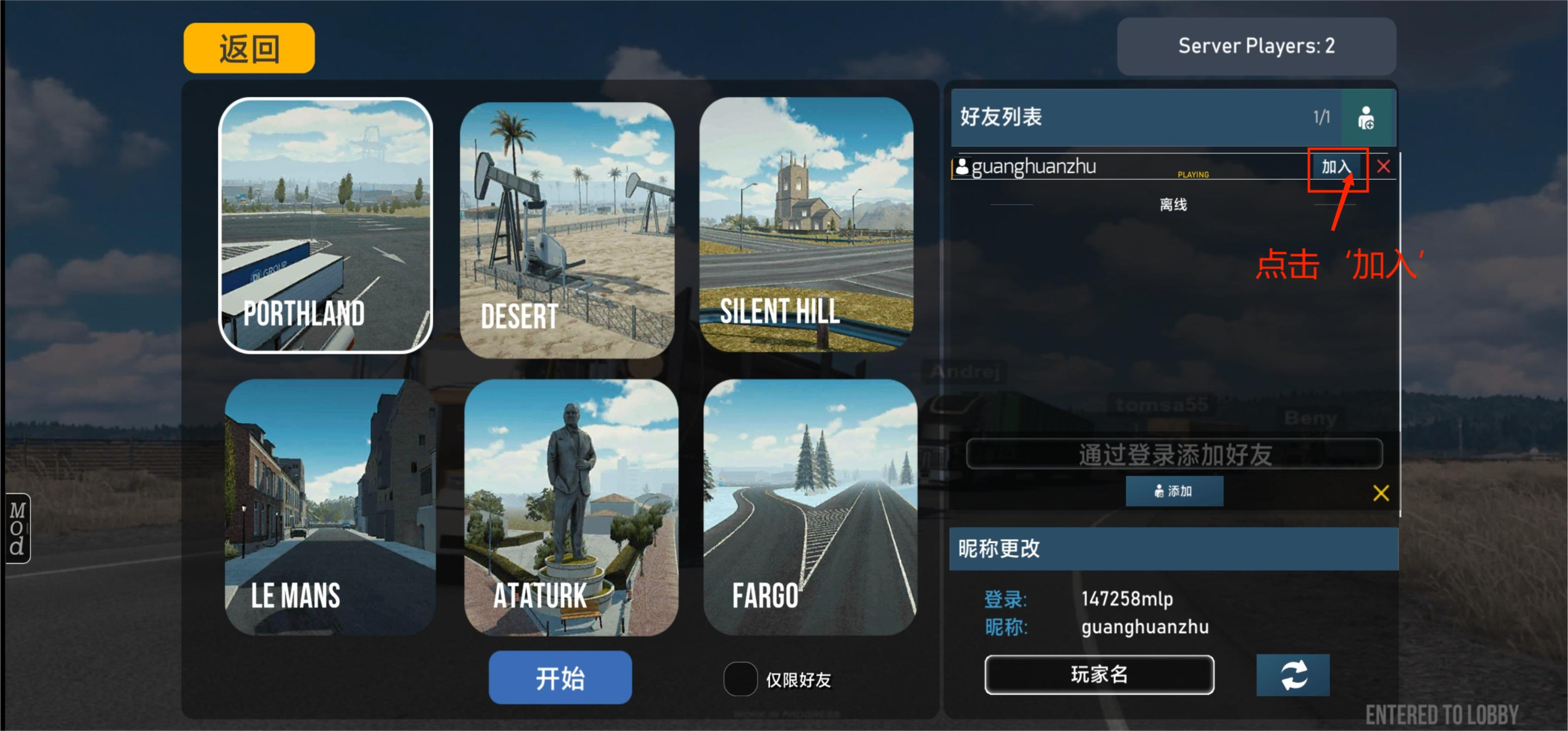 4.在好友列表,看见好友在线,点击‘加入’即可进入好友的房间