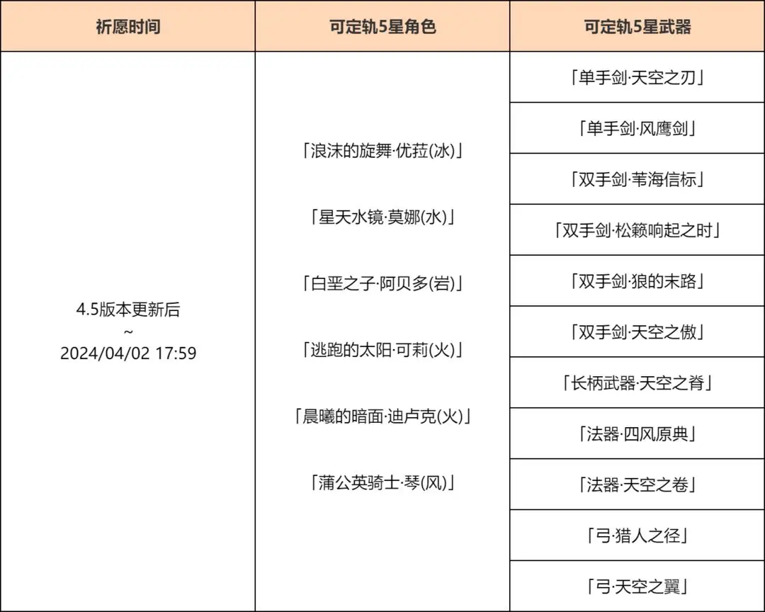 ●本期集录祈愿的所有5星物品及4星物品范围: