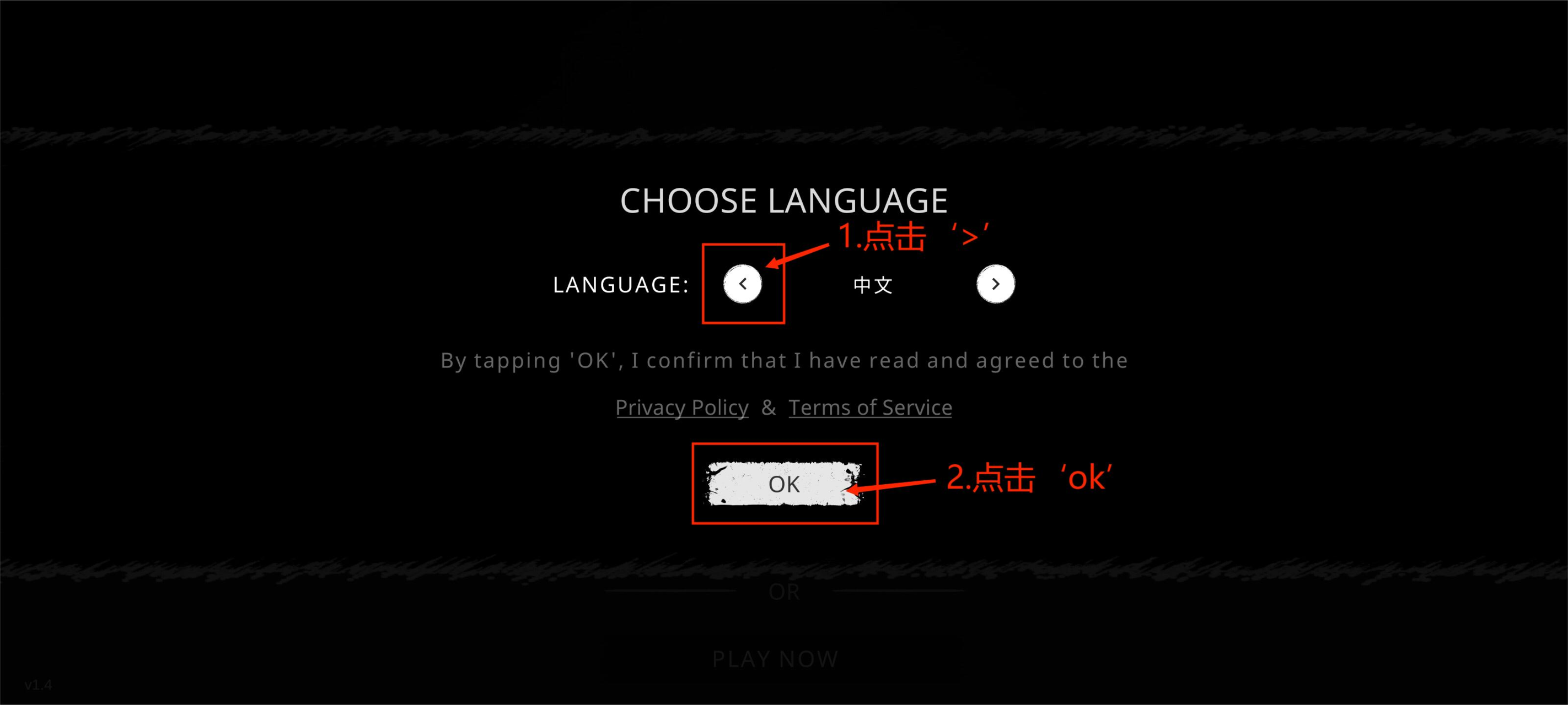 第一种:进入游戏时更改,点击‘>’,后点击‘ok’