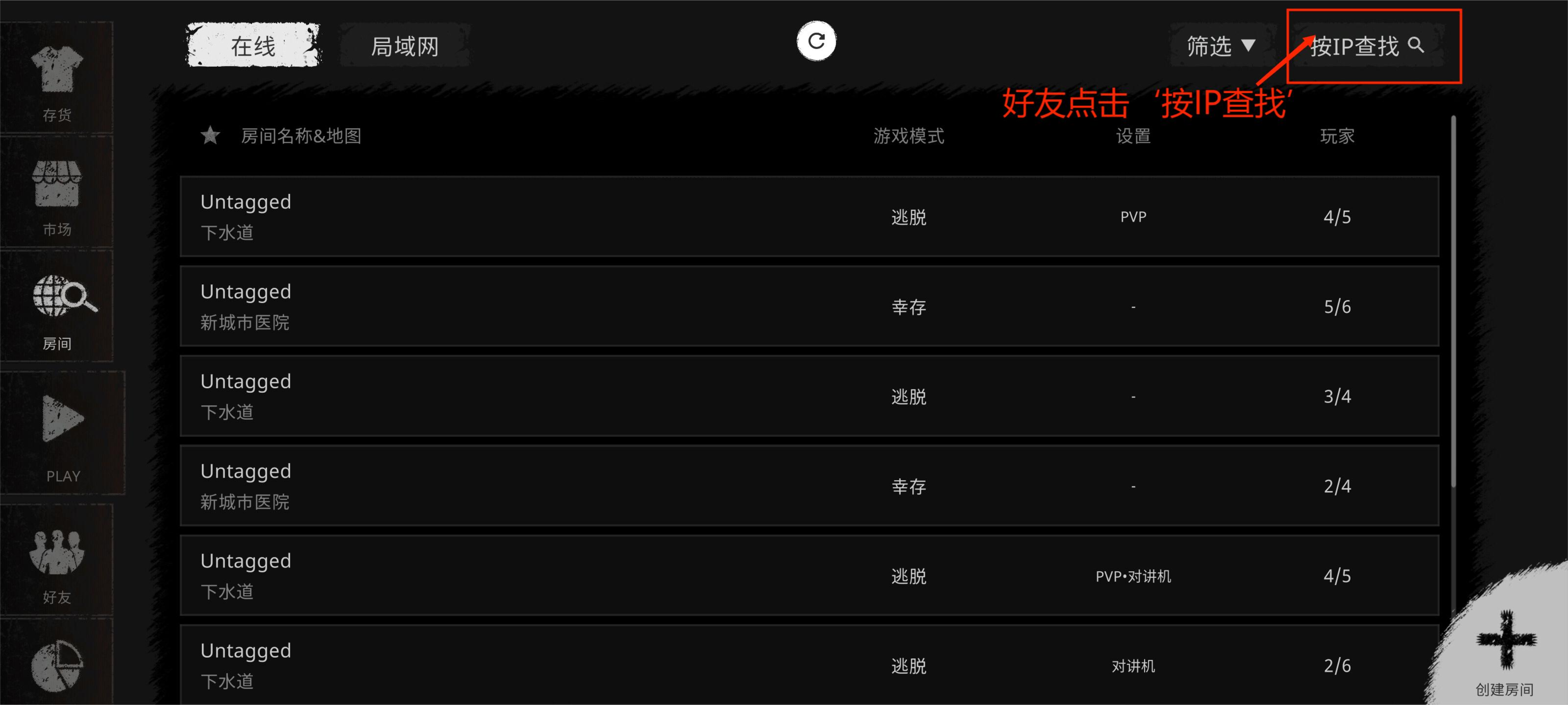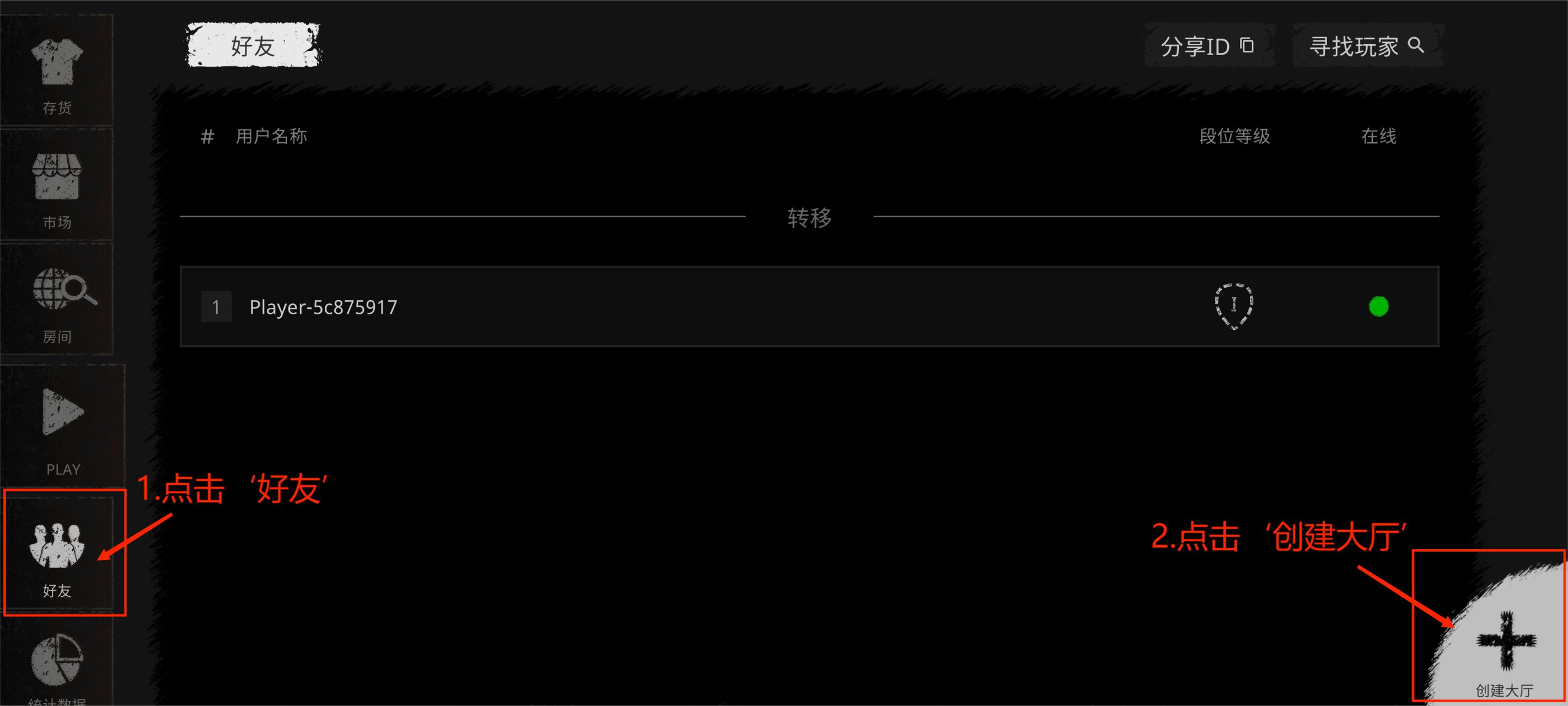 1.点击‘好友’后,点击‘创建大厅’
