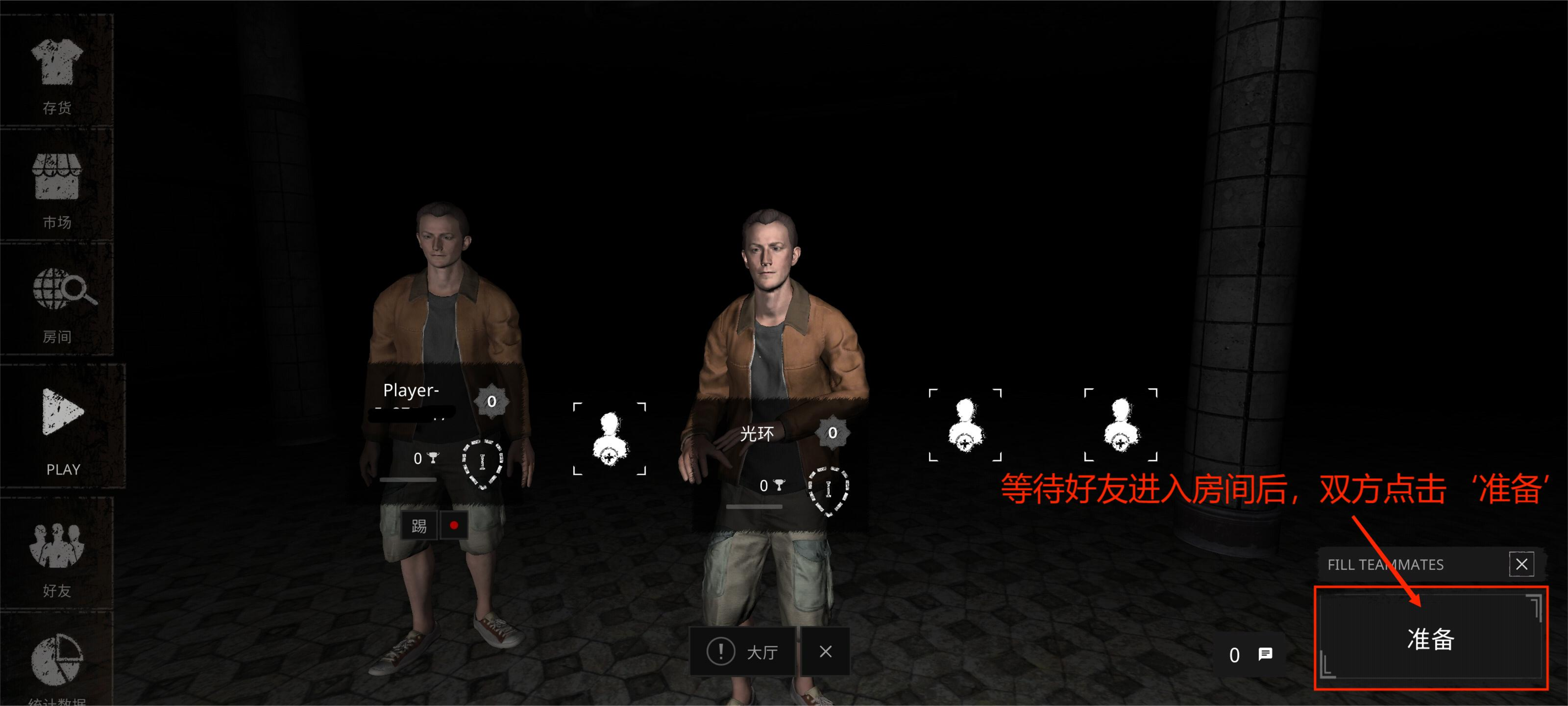 7.等待好友加入房间后,双方点击‘准备’