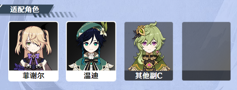 「其他角色」:一般驻场输出双手剑角色如「迪卢克」「优菈」「雷泽」「嘉明」等也可以佩戴该武器